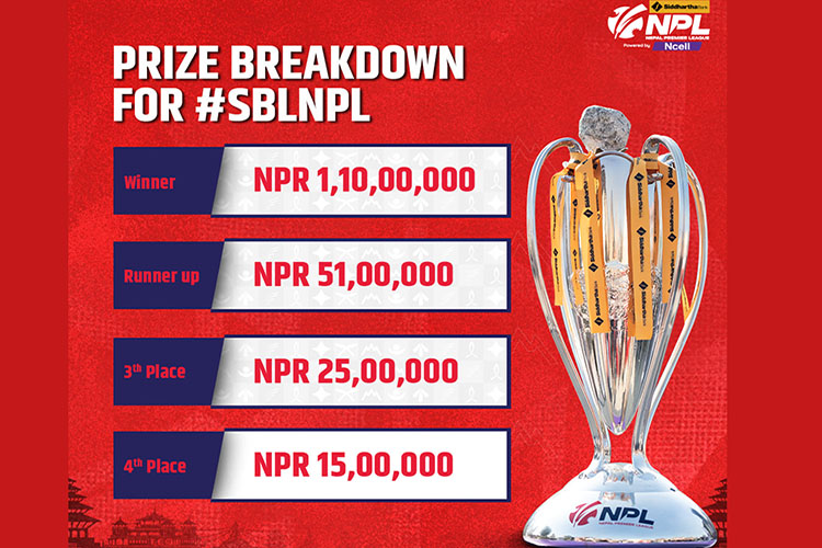 काठमाडौं । नेपाल प्रिमियर लिग (एनपीएल)को विजेता टोलीले १ करोड १० लाख रुपैयाँ पुरस्कार पाउने भएको छ ।