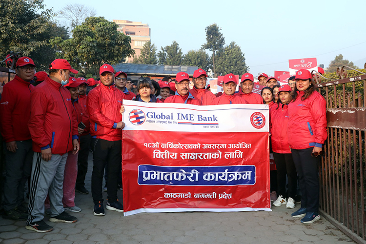 काठमाडौंमा आयोजित प्रभात फेरिमा नेपाल उद्योग वाणिज्य महासंघका अध्यक्ष तथा ग्लोबल आइएमई बैंकका अध्यक्ष चन्द्रप्रसाद ढकाल, बैंक सञ्चालक समिति सदस्यहरू, बैंक उच्च व्यवस्थापनसहित १५ सयभन्दा बढी कर्मचारीहरूको उपस्थिति रहेको थियो ।