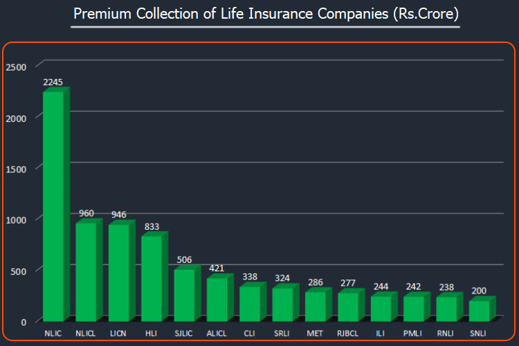 पुससम्म सूर्यज्योति लाइफले ५ अर्ब ६ करोड, एशियन लाइफ ४ अर्ब २१ करोड, सिटिजन्स लाइफ ३ अर्ब ३८ करोड, सानिमा लाइफ ३ अर्ब २४ करोड, मेट लाइफ २ अर्ब ८६ करोड, राष्ट्रिय जीवन बीमा २ अर्ब ७७ करोड, प्रभु महालक्ष्मी लाइफ २ अर्ब ४२ करोड, रिलायबल नेपाल लाइफ २ अर्ब ३८ करोड र आइएमई लाइफले २ अर्ब ४४ करोड बीमा शुल्क संकलन गरेका छन् ।