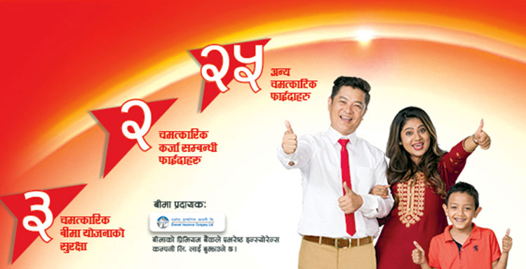 यस योजना अन्तर्गत खाता खोल्ने ग्राहक महानुभावहरुले २१ लाखसम्मको बीमा सुविधा प्राप्त गर्न सक्नेछन् । यसै सुविधा अन्तर्गत खातावालाको दुर्घटनाबाट मृत्यु भएमा वा पूर्ण रुपमा अशक्त भएमा १० लाख सम्मको बीमा सुविधा, १८ घातक रोगहरुको लागि १० लाख सम्मको बीमा सुविधा र १ लाखसम्मको औषधी उपचार बीमा सुविधा प्राप्त गर्न सक्नेछन् । औषधी उपचार बीमा अन्तर्गत बैंकले आफ्ना ग्राहक महानुभावहरुलाई अझ विशेष सुविधा दिने उद्देश्यले बहिरंग उपचारमा २० हजारसम्म र अस्पताल भर्ना वापत ८० हजार सम्मको बीमा सुविधा प्रदान गर्नेछ र उपरोक्त उल्लेखित बीमा सुविधाहरु वापत लाग्ने प्रिमियम बैंक स्वयंले तिर्नेछ ।