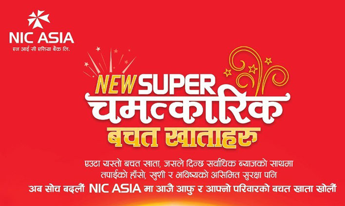 “बैंक पनि साथी पनि, राम्रो पनि हाम्रो पनि” भन्ने मूल नाराका साथ आम जनसमुदायमा केन्द्रित बैंकिङ्ग सेवा प्रदान गर्दै आइरहेको एनआईसी एशिया बैंकले आफ्ना ग्राहकलाई थप फाईदाहरु पस्कदैं नयाँ निक्षेप योजना ‘न्यू सुपर चमत्कारिक निक्षेप योजना’ हरु सार्वजनिक गरेको छ ।
