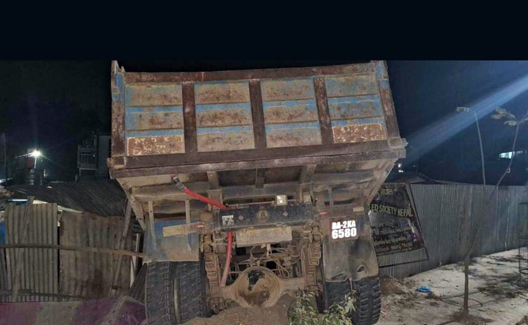 बिहान करिब ३ः४० सो बजेको समयमा काठमाडौंको शङ्खरापुर नगरपालिका–६ साँखु सलम्बुटारस्थित साँखु–ब्रह्मखेल सडकखण्डमा बा २ क ६५८० नम्बरको टिपर अनियन्त्रित भई युवराज थापाले सञ्चालन गरेको द्वन्द्वपीडित तथा अपाङ्ग समाज संस्थाले बनाएको जस्ताको टहरामा ठक्कर दिन पुगेको थियो ।