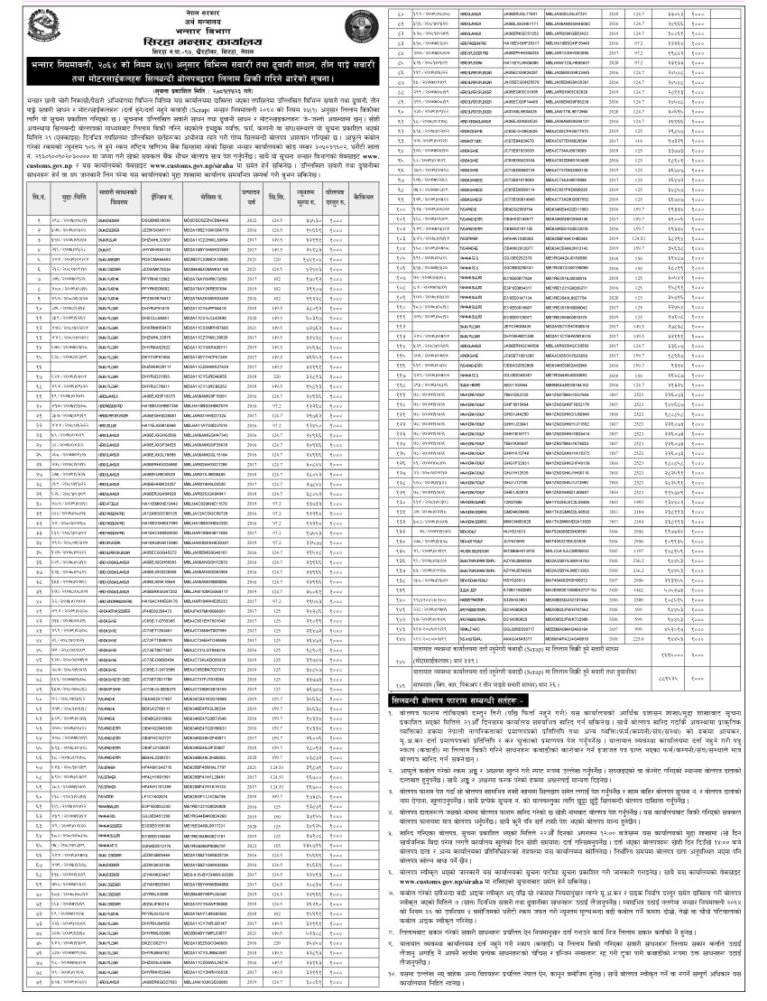 भन्सार कार्यालयले विभिन्न समयमा चोरी पैठारी, कर छली गरेर ल्याउने क्रममा जफत गरेका दर्ता हुने/नहुने पत्रु सवारी साधनहरू जे जस्तो अवस्थामा छन् सोही अवस्थामा बिक्री गर्न लागेको हो ।