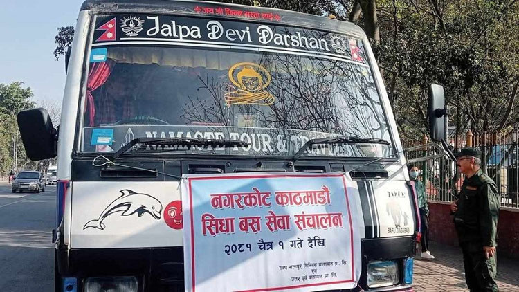 काठमाडौं । पर्यटकीय गन्तव्य नगरकोटदेखि काठमाडौंसम्म सिधा बस सेवा सुरु भएको छ । शुक्रबार चाँगुनारायण नगरपालिकाका प्रमुख जीवन खत्रीले नगरकोट-काठमाडौं बस सेवाको शुभारम्भ गरेका हुन् ।