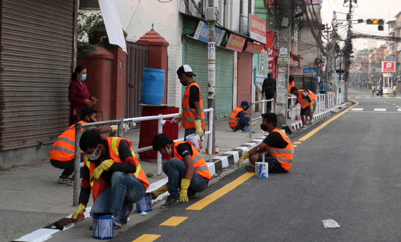 ‘लकडाउन’ का समयमा सडक चिन्ह लगाउने कामका कारण उपत्यकाका सडक चिटिक्क देखिएका छन् । एकातर्फ सवारीसधानको चाप कम र अर्कातिर भर्खर कालोपत्र भएका सडकमा पोतिएका सडक चिन्हले उपत्यकाको मुहार नै फेरिएको छ ।