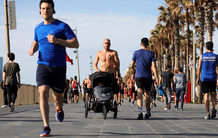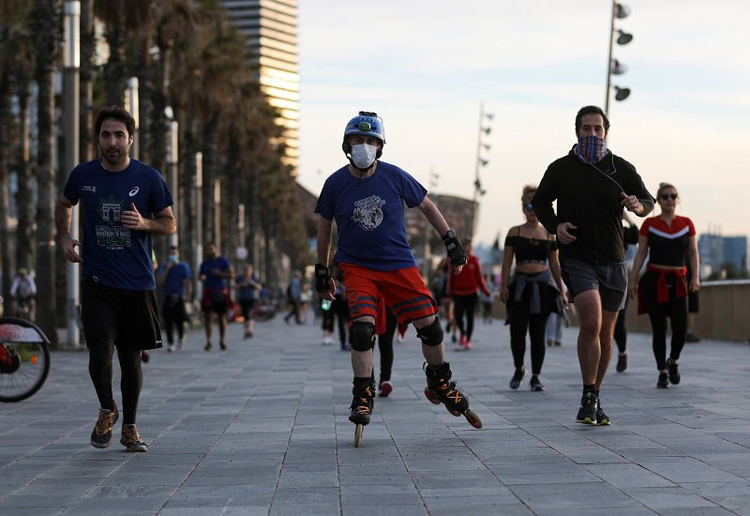 सरकारले प्रतिबन्धलाई खुकुलो बनाउने जनाएलगत्तै ८ हप्तादेखि कैदीझैं घरभित्र बस्न बाध्य स्पेनी नागरिकहरु पहिलोपल्ट जगिङ गर्न, साइकल कुदाउन र रोलरस्केटमा हुँइकिन सडकमा देखिएका छन् ।