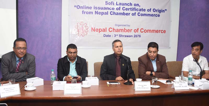 यस्तै, चेम्बर अफ कमर्शका अध्यक्ष राजेशकाजी श्रेष्ठले सरकारले अवलम्बन गरेको डिजिटल इकोनोमि डिजिटल नेपालको अवधारणा अनुरुप नै विदेशी व्यापार जस्तो अत्यन्तै गतिशील क्षेत्रमा अनलाईन सर्टिफिकेट अफ ओरिजिलनको सफ्ट लञ्च हुनु समय सान्र्दभिक रहेको बताए । उनले भने ‘मुलुकको निकासी अभिवृद्धि गर्न र व्यापार घाटा घटाउन कागजातकोे संख्या बढी भयो भन्ने सन्दर्भमा यो अत्यन्तै सकारात्मक भएको र यसबाट लागत घट्ने र समयको बचत भई प्रभावकारितामा वृद्धि हुने छ । ’