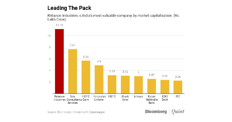 भारतीय डलर अर्बपति तथा विश्वकै १० औं धनी व्यक्ति मुकेश अम्बानीको कम्पनी रिलायन्स इन्डष्ट्रिज भारतीय सेयर बजारकै सबैभन्दा मूल्यवान कम्पनी बनेको छ ।