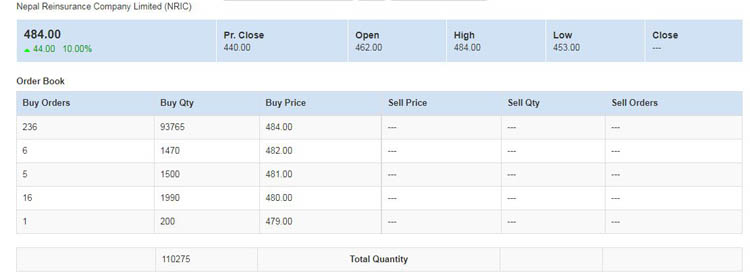 संस्थागत र सर्वसाधरण गरी १० करोड कित्ता सेयर भएको नेपाल पुनर्बीमा कम्पनीको सेयर किन्नेको आइरो लागेको छ । गत सोमबारबाट कारोबारमा आएको कम्पनीको सेयर किन्ने चाप देखिएको छ ।