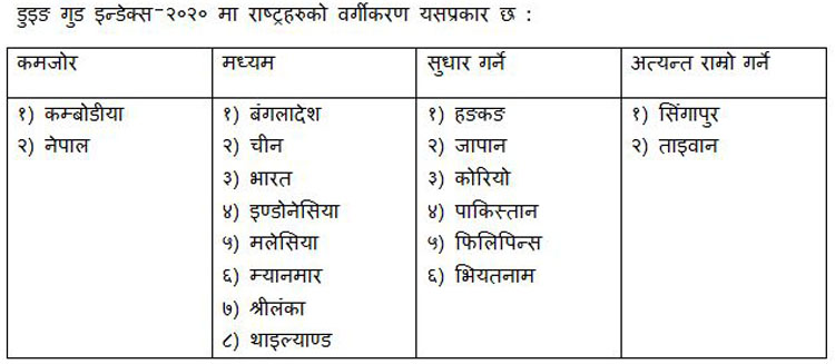 डुइङ गुड इन्डेक्स-२०२० सम्बन्धि थप तथ्यहरु