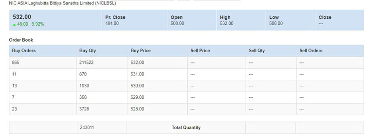 करिब ४ लाखभन्दा बढीले आइपीओ भरेको कम्पनीको दोस्रो बजारमा पनि सेयर किन्नेको ओइरो लागेको छ । कम्पनीको ठूलो संख्यामा सेयरको माग भए पनि विक्रीकर्ता भने देखिएका छैनन् ।