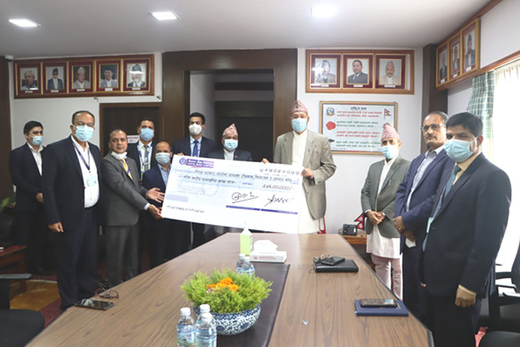 अर्थमन्त्री डा.युवराज खतिवडालाई सो बैंक सञ्चालक समितिका अध्यक्ष वासुदेव अधिकारीले उक्त चेक हस्तान्तरण गरे ।