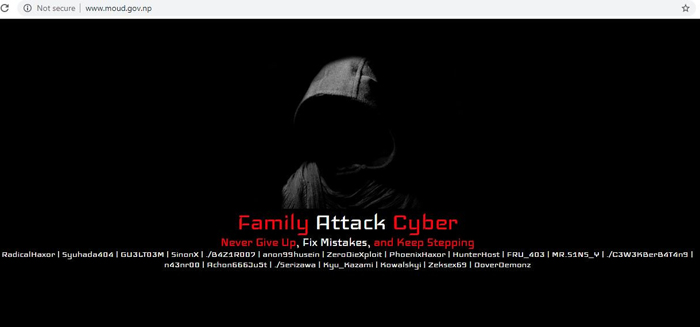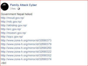 फेमली एट्याक साइबर नामक ह्याकर समूहले नेपालका केही सरकारी निकायका साइटहरु ह्याक गरी आफ्नो नियन्त्रणमा लिएका छ ।
