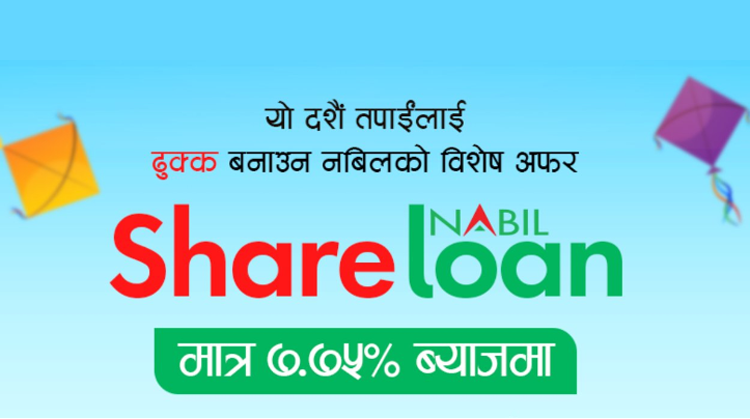 यसैबीच निजी क्षेत्रको अग्रणी नबिल बैंकले वार्षिक ७.७५ प्रतिशत ब्याजदरमा नबिल सेयर कर्जा योजना ल्याएको छ ।