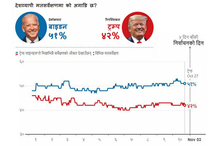 यो कुरा एकातिर राखौँ। देशव्यापी मतसर्वेक्षणहरूमा वर्षको अधिकांश समय डोनल्ड ट्रम्पभन्दा जो बाइडन अगाडि देखिएका छन्।