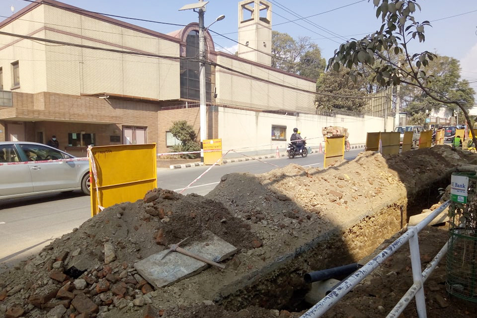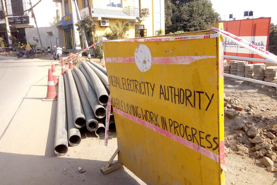 काठमाडौं । हाल उपत्यका भित्र विभिन्न स्थानमा विद्युतीय तार भूमिगत गर्ने काम भइरहेको छ । पछिल्लो समय विद्युत प्राधिकरणले पानीपोखरी र चक्रपथ खण्डमा दुवै पट्टी जमिन खनेर विद्युत् भूमितगतको काम गरिरहेको छ ।