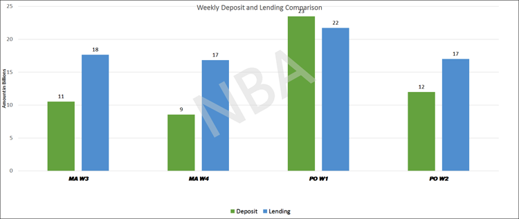 नेपाल बैंकर्स संघका अनुसार पुस दोस्रोसाता मात्र बैंकहरुले १७ अर्ब रुपैयाँ कर्जा प्रवाह गरेका छन् । यस्तै, मंसिर तेस्रो सातादेखि यताको अवधिमा ७४ अर्ब ऋण लगानीक गरेका छन् । जबकी यस अवधिमा ५५ अर्ब निक्षेप संकलन गरेका छन् ।