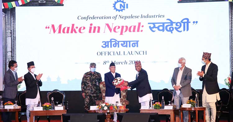 यसैबीच, यसैसाता राजधानीमा निजी क्षेत्रको छाता संगठन नेपाल उद्योग परिसंघ (सीएनआइ) ले आयोजना गरेको कार्यक्रममा सहभागी भएँ । कार्यक्रमको उद्देश्य मुलुकलाई सम्बृद्ध बनाउनका लागि एक अभियानको शुरूवात गर्ने थियो । अभियानको नाम थियो, ‘मेक इन नेपाल ः स्वदेशी’ । उक्त कार्यक्रमले यस अभियान मार्फत स्वदेशमै उत्पादन भएका वस्तुहरूको उपभोग बढाउने, औद्योगीकरण गर्ने, आर्थिक विकास गर्ने र देशलाई सम्बृद्ध तुल्याउने थियो । परिसंघका पदाधिकारीहरूले उक्त अभियान शुरू भएको दिनलाई देशलाई सम्बृद्धिको बाटोमा हिँडाउने एतिहासिक दिनको रूपमा व्याख्या गरेका थिए । कार्यक्रममा प्रमुख अथिति प्रधानमन्त्री खड्ग प्रसाद ओली थिए ।