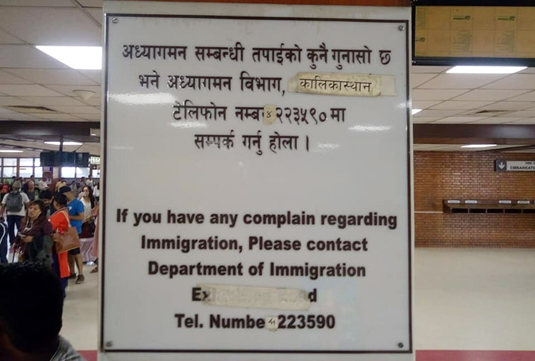 तर, किन व्यवस्थापनले उक्त समयमा सबै काउन्टर खोल्नका लागि पर्याप्त कर्मचारीहरु परिचालन गर्न सकेन भनेर मन खिन्न भयो । अध्यागमन सम्बन्धी केही गुनासो वा सुझाव दिनु परेमा कालिकास्थान स्थित अध्यागमन बिभागको केन्द्रिय कार्यालय सम्पर्क गर्नुपर्ने सुचना हेर्दै दिगमिग लाग्ने पुरानो सुचना पाटीमा लेखिएको थियो । अर्थात, एयरर्पोटमा गुनासो गर्ने काउण्टर धरि थिएन ।