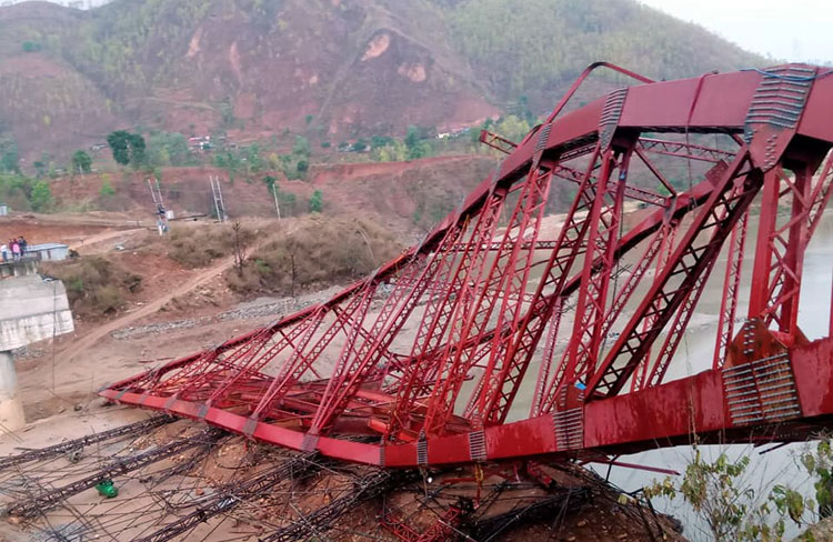 स्टिलको ट्रस हालेर बनाइने फलामे पुलहरू पनि केही भत्किएका थिए । उनले त्यसमा ‘स्टेपवाइज ’ नटबोल्ट कस्दै जानु पर्ने हुँदा त्यस अघि फिट गर्नुपर्ने हुँदा काम पूरा नहुँदै केही पुल बगाएको बताए । ‘एकै चोटी सबै नटबोल्ट कस्न मिल्दैन, सबै मिलाएर एकरएक गरी नटबोल्ट कस्दै जानुपर्छ, त्यसमा पहिला फिट गर्ने अनि दाँयाको नट बोल्ट कसेपछि फेरि परको नट कस्न जानु पर्छ, यसरी गर्दा एकपटि मात्र नट कसिएका बाढीले सजिलै बगाएका हुन् ।