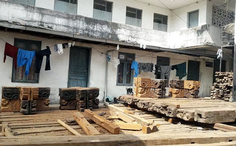 काष्ठमण्डपको मूल थाममा प्रयोग भएको काठ महोत्तरीबाट ल्याइएको उनले बताए । ‘काष्ठमण्डपका मूल ४ वटा थाम मध्ये एउटा थाम पुरानै र ३ वटा नयाँ थाम प्रयोग गरिएको छ । पुरानो थाम हजार वर्ष पुरानो हो भने नयाँ थाम महोत्तरीबाट ल्याइएको अग्राख हो,’ उनले भने ।