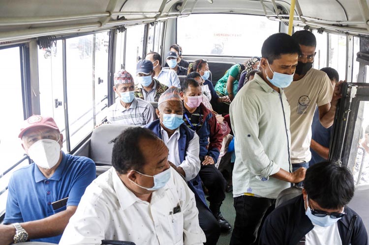 काठमाडौं । काठमाडौं उपत्यका भित्र सार्वजनिक गाडी चढ्दा मास्क अनिवार्य गरिएको छ । कोरोनाको ओमिक्रोन भेरियन्ट तीव्र गतिमा फैलिएसँगै रोकथामका लागि उपत्यकाका तीन जिल्लाका प्रमुख जिल्ला अधिकारीको संयुक्त बैठकले यस्तो निर्णय गरेको हो ।