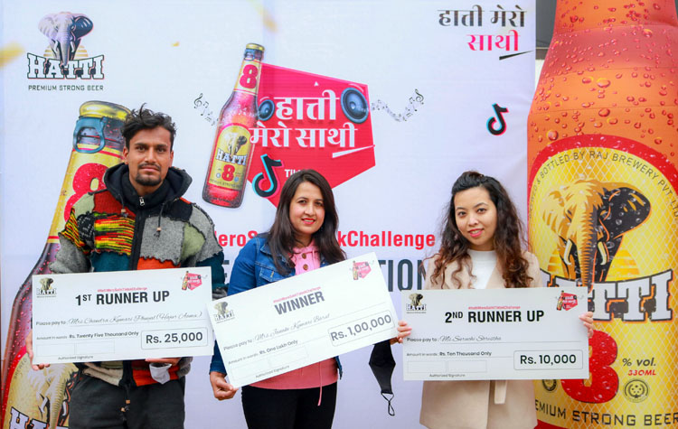 काठमाडौं । हात्ती ८ स्ट्रङ्ग बियरले ‘हात्ती मेरो साथी’ टिकटक च्यालेन्ज सम्पन्न गरेको छ । कम्पनीले जावलाखेल ग्रुप अफ इन्डस्ट्रिजको परिसरमा एक कार्यक्रम आयोजना गर्दै विजेता घोषणा गरेको हो ।