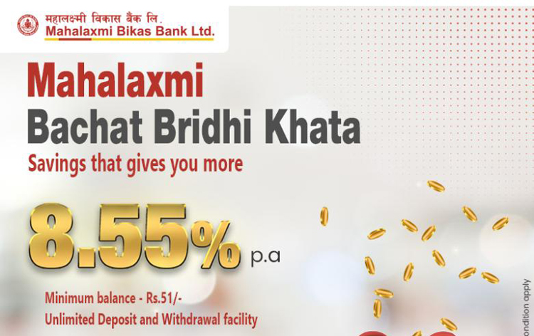 ग्राहकहरुको आम्दानीमा उच्च प्रतिफल दिन प्रतिवद्ध रहीआएको यस बैंकले ग्राहकहरुको बैंकिङ आवश्यकता, चाहना तथा अपेक्षलाई मध्यनजर गर्दै महालक्ष्मी बचत वृद्धि खाता सञ्चालनमा ल्याएको हो । देशैभर छरिएर रहेका १०३ शाखाहरु मार्फत यो खाता खोल्न सकिने बैंकले जनाएको छ ।