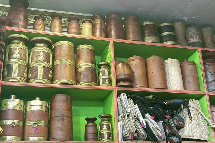 योसँगै रेजी माला हारी माला (राई जातीले लगाउँने पैसाको माला), जोर बिटी, चरी बाजा, मादल, झ्याम्टा, कठुवा (ठेकी) तोम्बाको भाडा, लेहेङ्गा, ढाका साडीसँगै हरेक महिला, पुरुषसँगै बालबालीकाले लगाउने लुगासँगै फेबरीक, खाँडीको दौरा सुरुवाल, अल्लो उलनको टोपी, ढाका टोपी, प्छयौरा, पर्स, जुक्ताचप्पल समेत पाइन्छ ।