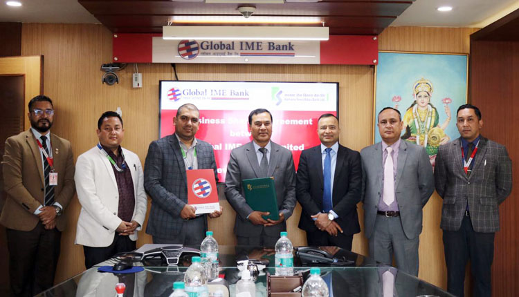 काठमाडौं । ग्लोबल आइएमई बैंक र कामना सेवा विकाश बैंक बीच गैर कोषमा आधारित बैंकिङ्ग सुविधा उपलब्ध गराउन समझदारी पत्रमा हस्ताक्षर भएको छ ।
