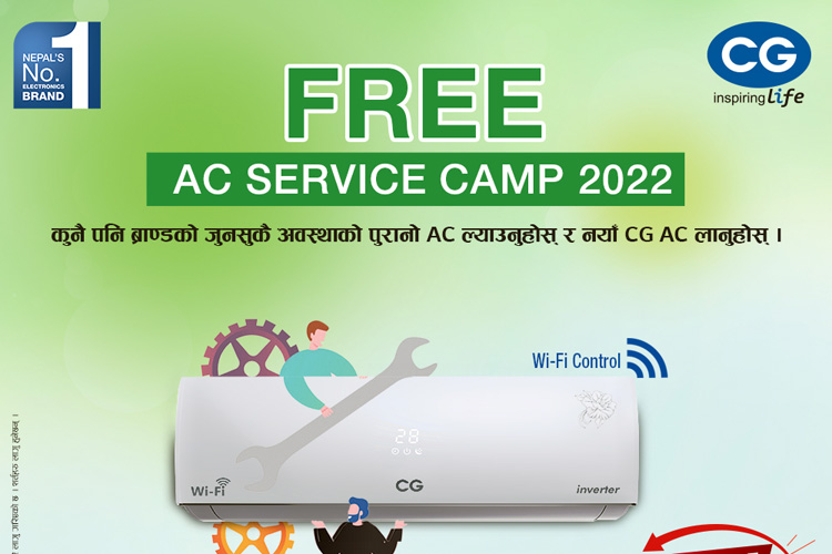 यस क्याम्प अवधिभर सीजी ब्राण्डको एसी बिना शुल्क फ्रीमा सर्भिसिङ गर्नुका साथै एक्सचेन्ज गर्न मिल्ने व्यवस्था समेत रहेको छ ।