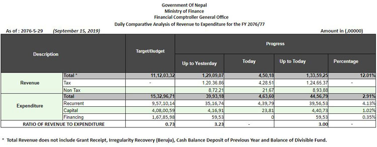 भदौ २९ गतेसम्म भएको सरकारी आम्दानी तथा खर्चको विवरण :