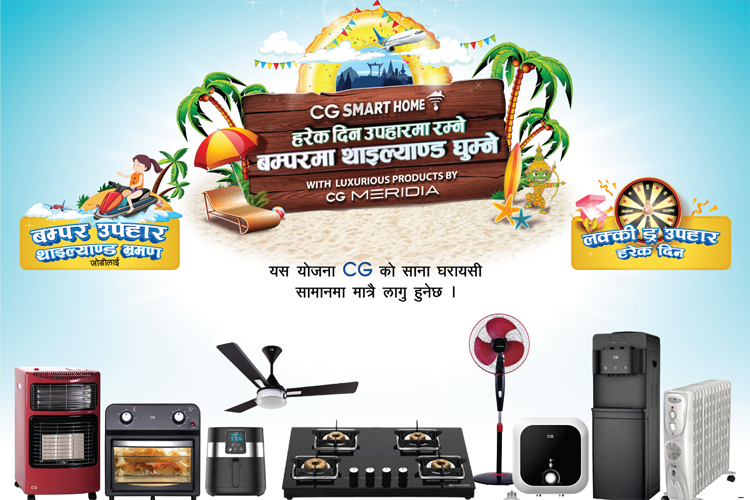 काठमाडौं । इलेक्ट्रीक सामान उत्पादक ब्राण्ड सीजीले नयाँ वर्ष २०७९ को अवसरमा आकर्षक उपहार योजना ल्याएको छ ।