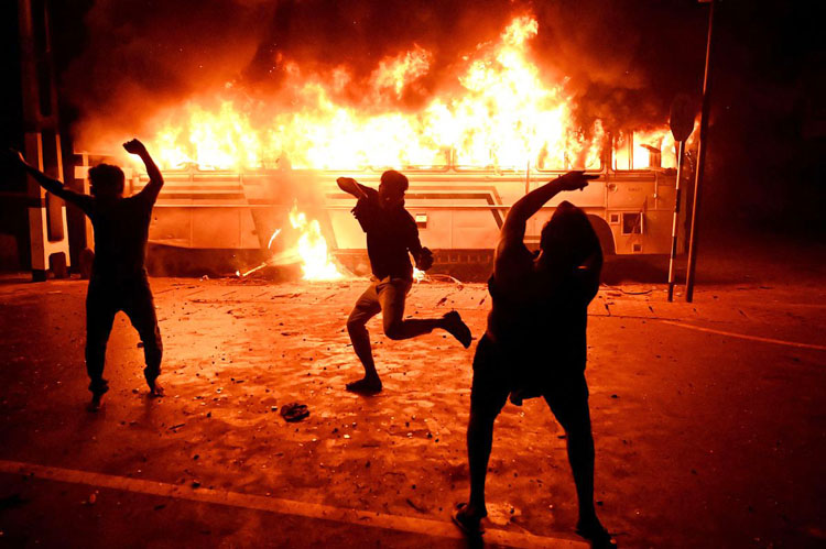 उक्त समयमा स्थिति नियन्त्रणमा लिन प्रहरीले अश्रुग्यास र हावाइ फायरसमेत गर्नु परेको थियो । त्यस्तै सोमबार नै ५० भन्दा बढी नेताहरुको घर जलाइएपछि ती नेताहरु शरण लिएर बसिरहेको बताइएको छ । यता राजपाक्षेको परिवारहरुलाई भने सुरक्षाकर्मीले घरबाट बाहिर निकालेर पूर्वोत्तर क्षेत्रमा रहेको त्रिनकोम नौसैनिक अड्डामा राखेको बीबीसीले जनाएको छ ।