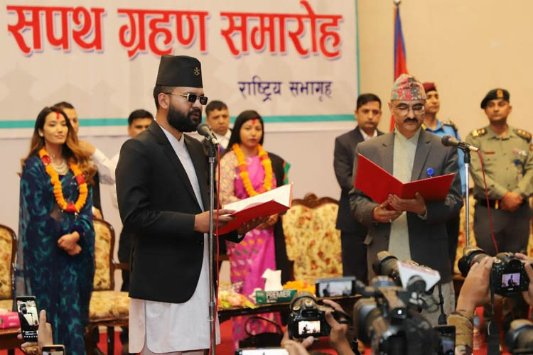 काठमाडौं । काठमाडौं महानगरपालिकाका नवनिर्वाचित मेयर बालेन्द्र साह(बालेन)ले शपथ लिएका छन् । उनले सोमबार राष्ट्रियसभा गृहमा आयोजित एक कार्यक्रमका बीच शपथ लिएका हुन्।
