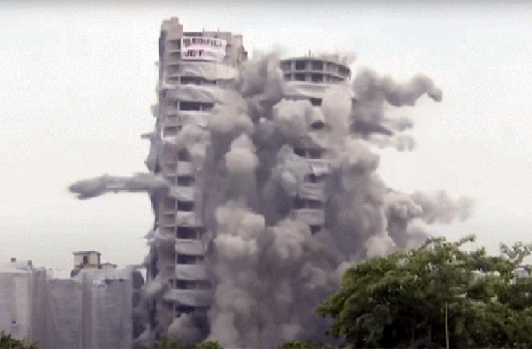 Following the orders of the apex court, today the Supertech twin towers located in Sector 93A in Noida were demolished after ensuring stringent safety protocols. #TwinTowers pic.twitter.com/4N8Ujz96XT