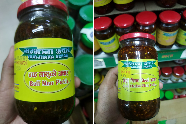बजारमा सामान्य मूला, काँक्रो, टिमुर, कागती, खुर्सानीदेखि मटन, चिनेक, बफ, पोर्क, सुकुटी, सिद्रा, प्राउन फिस हरेक परिकारको अचार पाइन्छ ।