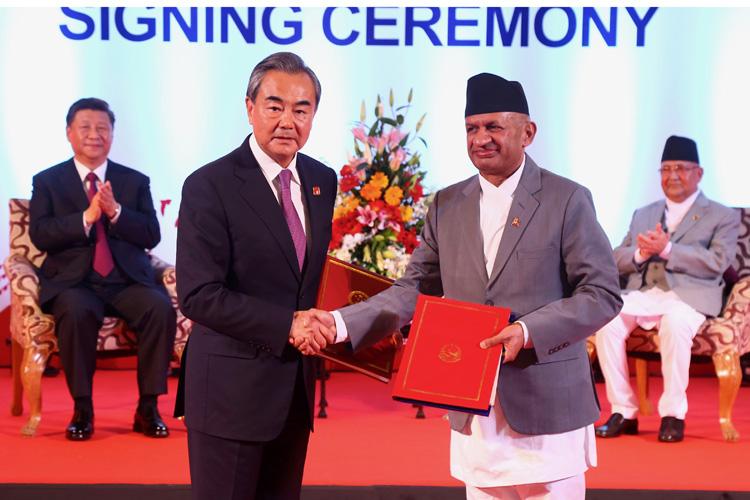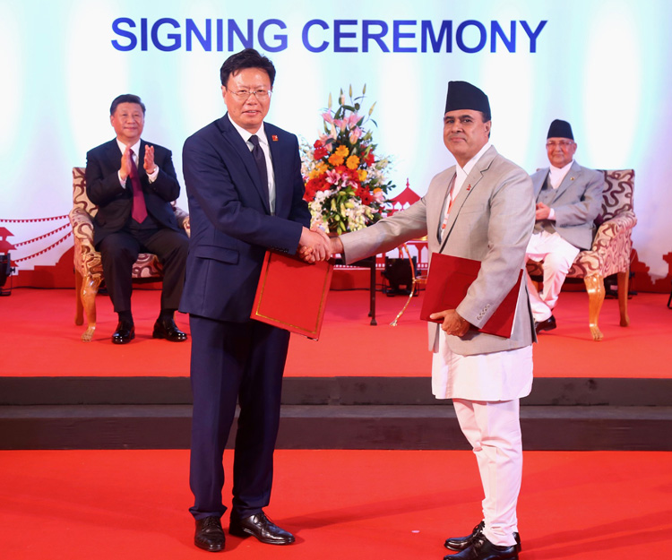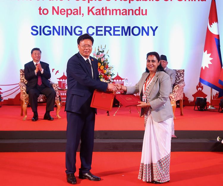 राष्ट्रपति सी र प्रधानमन्त्री केपी शर्मा ओलीको उपस्थितिमा आइतबार परराष्ट्रमन्त्री प्रदीपकुमार ज्ञवाली र उनका चिनियाँ समकक्षी वाङ यीले दुई वटा समझदारीपत्र, एक सम्झौता र अर्को एक सन्धिमा हस्ताक्षर गरी ती दस्तावेज आदानप्रदान गरेका थिए ।