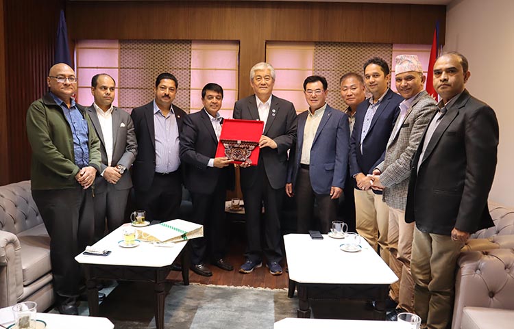 काठमाडौं । नेपाल उद्योग वाणिज्य महासंघका कार्यवाहक अध्यक्ष चन्द्रप्रसाद ढकाल सहित महासंघका पदाधिकारीहरू र कोरियाको माथिल्लो सदन नेशनल एसेम्ब्ली अफ कोरियाका सदस्य ली स्याङगनको नेतृत्वमा नेपाल भ्रमणमा आएको तीन सदस्यीय प्रतिनिधिमण्डल बीच आज महासंघ सचिवालयमा औपचारिक भेटवार्ता भएको छ ।