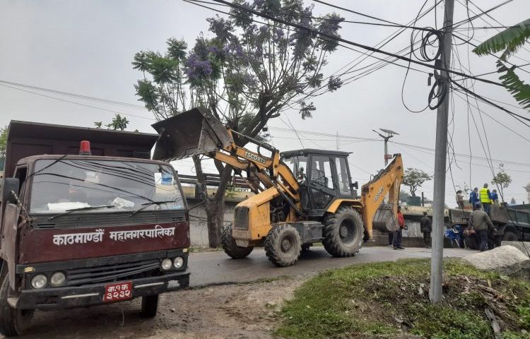 राष्ट्रिय वाणिज्य बैंकदेखि नेपाल टेलिकम केन्द्रीय कार्यालय वरिपरिका अवैध संरचना तथा अव्यवस्थित फोहरमैला हटाएको हो । महानगर प्रहरी प्रमुख राजुनाथ पाण्डेले तीन दिन अगाडिदेखि भवन वरिपरिका अव्यवस्थित फोहरमैला हटाउन माइकिङ गरेको र आज महानगरले विशेष सरसफाइ अभियान सञ्चालन गरेको जानकारी दिए ।