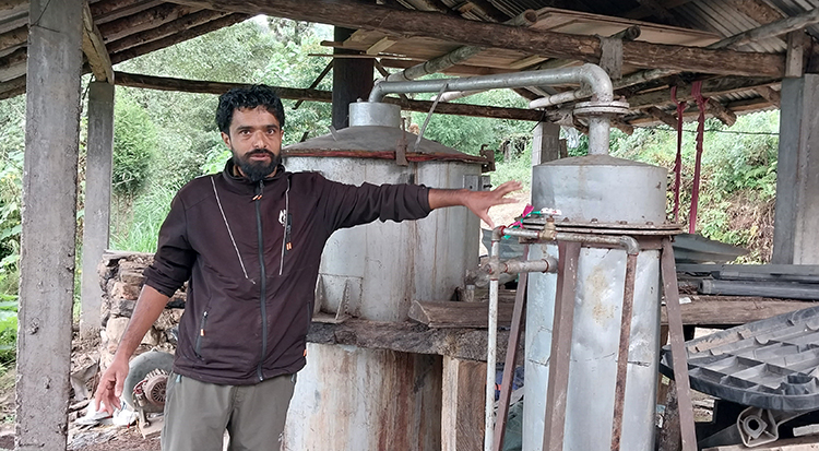 बाँकी स्थानीयवासीबाट वनस्पति खरिद गरी प्रशोधन गरेर तेल उत्पादन गर्ने गरिएको दाहालको भनाइ थियो । ‘गाउँका किसानले उत्पादन गरेको वस्तु खरिद गर्ने गरेको छु,’ उनले भने, ‘धूपी प्रतिकिलो रू आठ सय र तितेपाती प्रतिकिलो रू चार सयमा लिने गरेको छु ।’