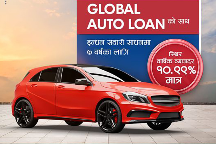 काठमाडौं । ग्लोबल आइएमई बैंकले ‘ग्लोबल अटो लोन’ योजना ल्याएको छ । बैंकले गाडी किन्न चाहने ग्राहकलाई लक्षित गर्दै यो योजना ल्याएको हो ।