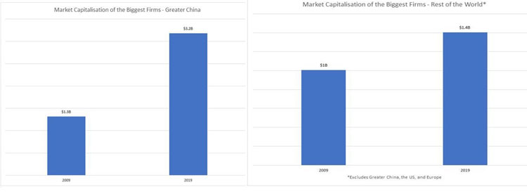 सन् २००८ मा उनीहरुले प्रत्यक्ष बैदेशिक लगानीको हिस्सा १५.८ प्रतिशत पुर्याएका छन् । अहिले विश्वका ठूला दश कम्पनीहरुमा दुईवटा कम्पनी चिनीयाँ हुन् ।
