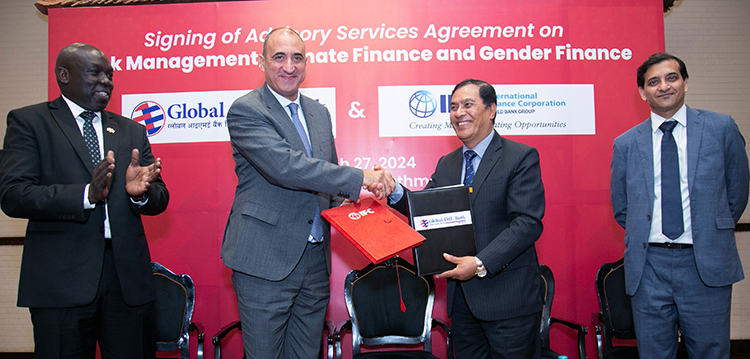उक्त समझदारी पत्रमा ग्लोबल आइएमई बैंक लिमिटेडका प्रमुख कार्यकारी अधिकृत रत्नराज बज्राचार्य तथा आईएफसीको तर्फबाट दक्षिण एशिया क्षेत्रीय सल्लाहकार तथा अपस्ट्रीम प्रबन्धक मेहदी चेरकाउई बीच हस्ताक्षर गरे ।