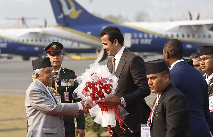 काठमाडौं । राष्ट्रपति रामचन्द्र पौडेलको निमन्त्रणामा राजकीय भ्रमणका लागि कतारका अमिर (राजा) शेख तमिम बिन हमाद अल थानी काठमाडौं आइपुगेका छन् ।