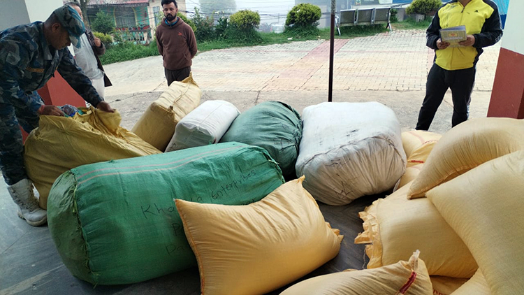 बक्खु कपडा, चिप्लो बक्खु, हाल्फ ज्याकेट, जेन्स र लेडिज चप्पल, अन्य ज्याकेट, ट्राउजर, गहुँ, मकैको च्याख्ला गरेर रु ६ लाख १८ हजार ३०० को सामग्री नियन्त्रणमा लिइएको जनाइएको छ । त्यस्तै सवारीको मूल्य रु ७ लाख कायम गरेर रु १३ लाख १८ हजार तीन सय बराबरका सामग्री बरामद भएको जनाइएको छ । रासस