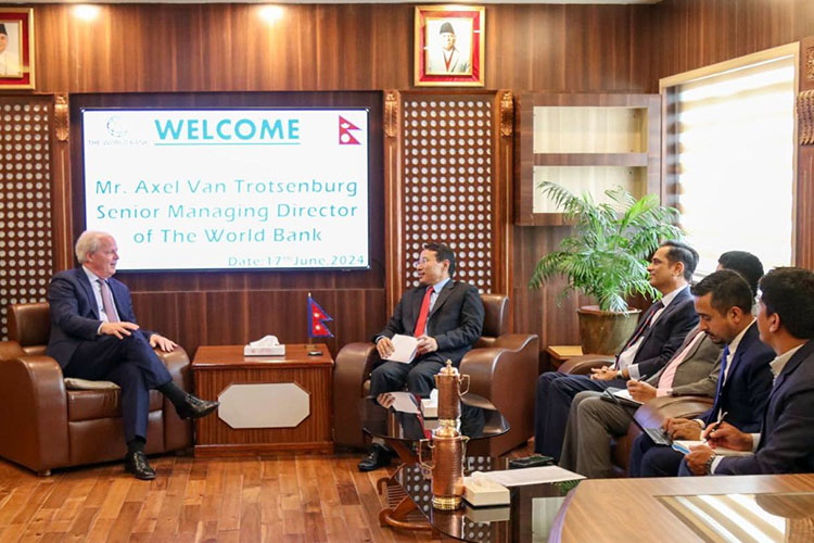 काठमाडौं । विश्व बैंकका वरिष्ठ प्रबन्ध निर्देशक एक्सेल भान ट्रोटसनबर्गले अर्थमन्त्री वर्षमान पुन अनन्तसँग भेटेका छन् ।