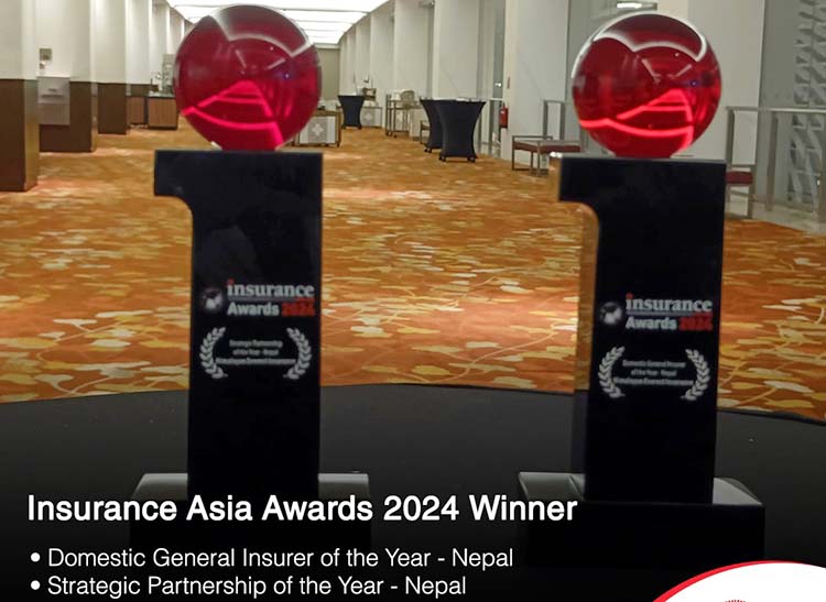 कम्पनीले सिंगापुरमा आयोजित इन्स्योरेन्स एसिया अवार्ड २०२४ मा ‘डोमेस्टिक जेनेरल इन्स्योरर-नेपाल’ र ‘स्ट्राटजिक पार्ट्नरशिप अफ द इयर-नेपाल’ अवार्ड पाएको हो ।