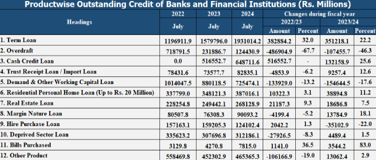 गत आवमा बिल पर्चेज, ट्रम लोन, क्यास क्रेडिट, ट्रस्ट रिसिप्ट/इम्पोर्ट लोन र मार्जिन कर्जाको वृद्धिदर ११.५ प्रतिशतभन्दा धेरै छ । पछिल्ला महिनाहरूमा यी खालका कर्जाको माग बढ्दै गएको राष्ट बैंकले जनाएको छ ।