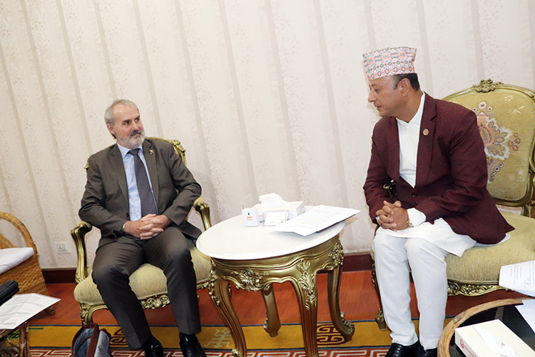 काठमाडौं । ऊर्जा, जलस्रोत तथा सिँचाइमन्त्री दीपक खड्का र नेपालका लागि एशियाली विकास बैङ्क (एडीबी) का देशीय निर्देशक अर्नाउड काउकोइसबीच भेटवार्ता भएको छ ।